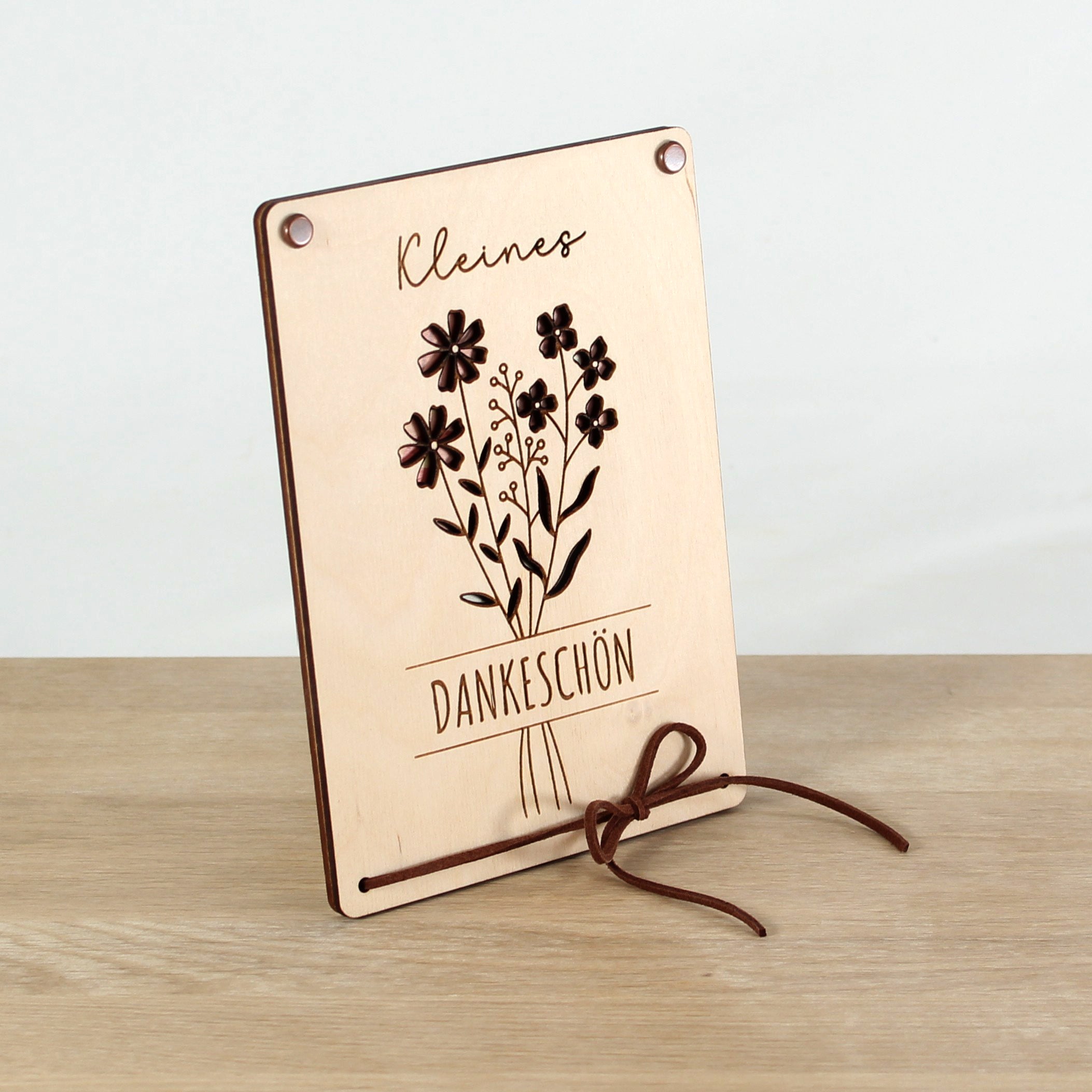 Mach dein Dankeschön zu etwas ganz Besonderem! Unsere liebevoll gestaltete Geschenkkarte aus Holz mit filigranem Blumenstrauß-Motiv wird individuell personalisiert und ist eine stilvolle sowie nachhaltige Möglichkeit, Geld oder Gutscheine zu verschenken.