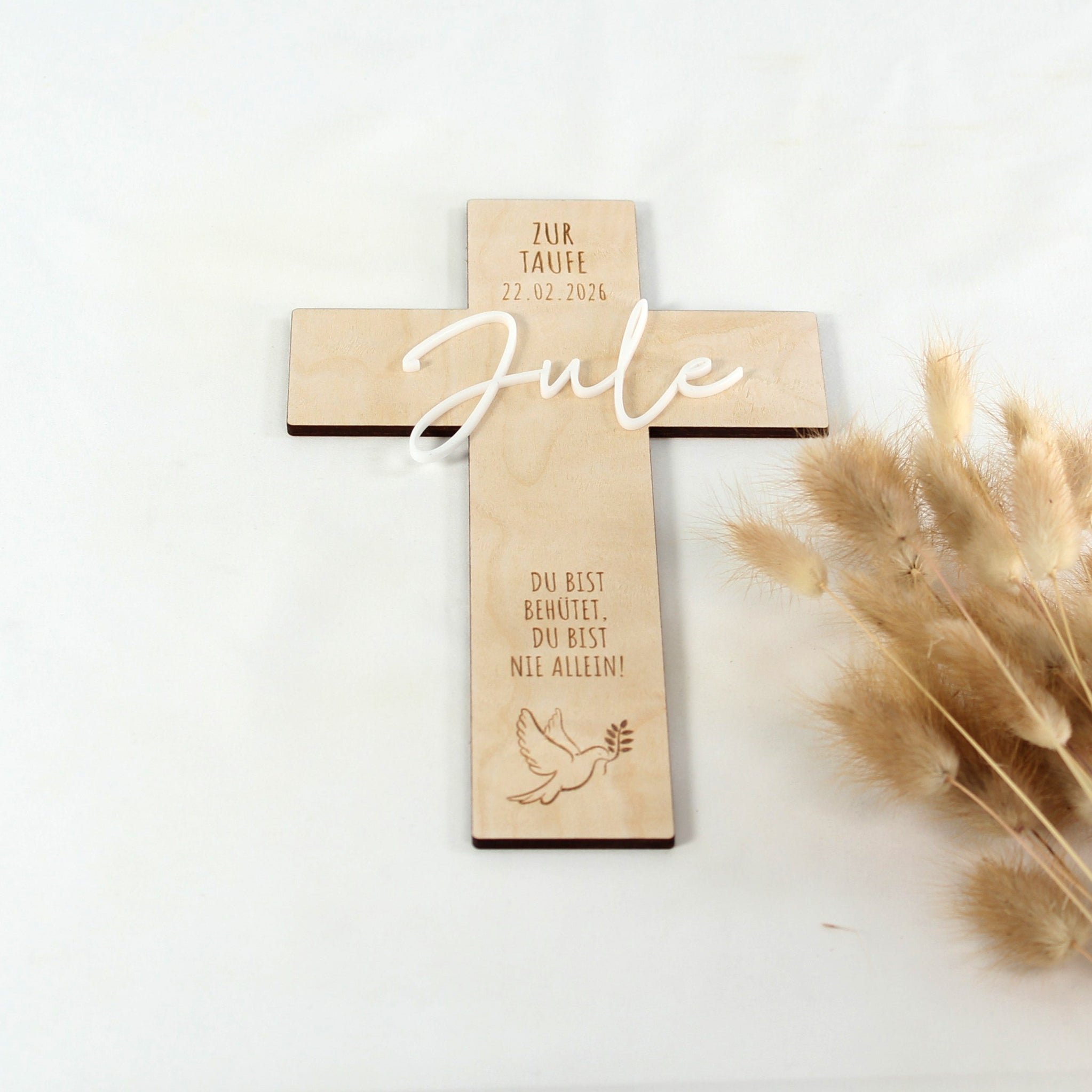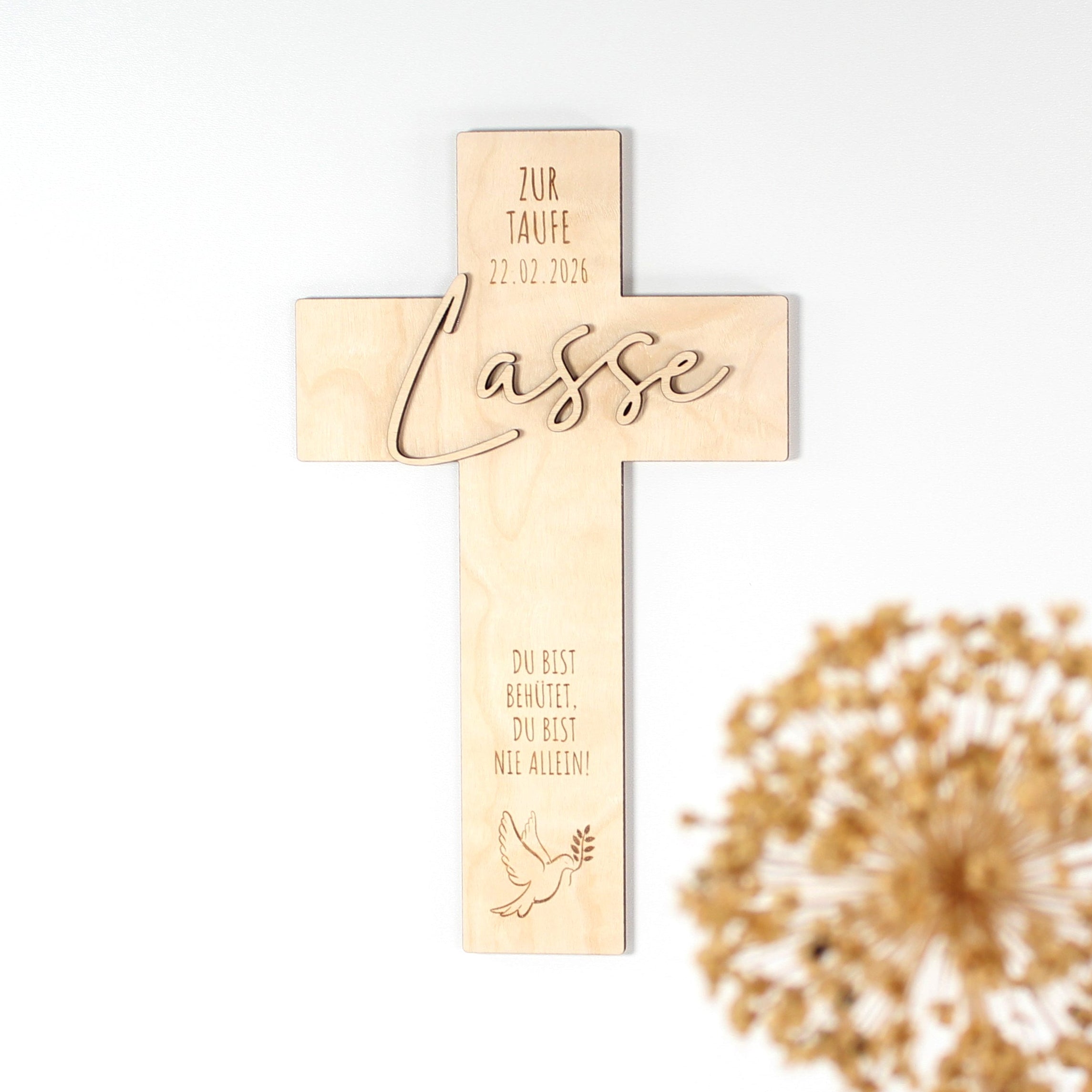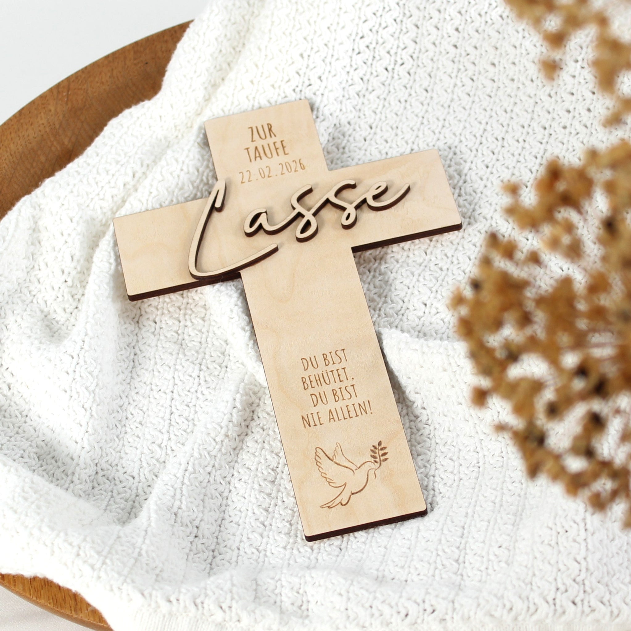 Ein personalisiertes Holzkreuz ist mehr als nur Dekoration. Es ist ein Symbol für Schutz, Glaube und Geborgenheit.