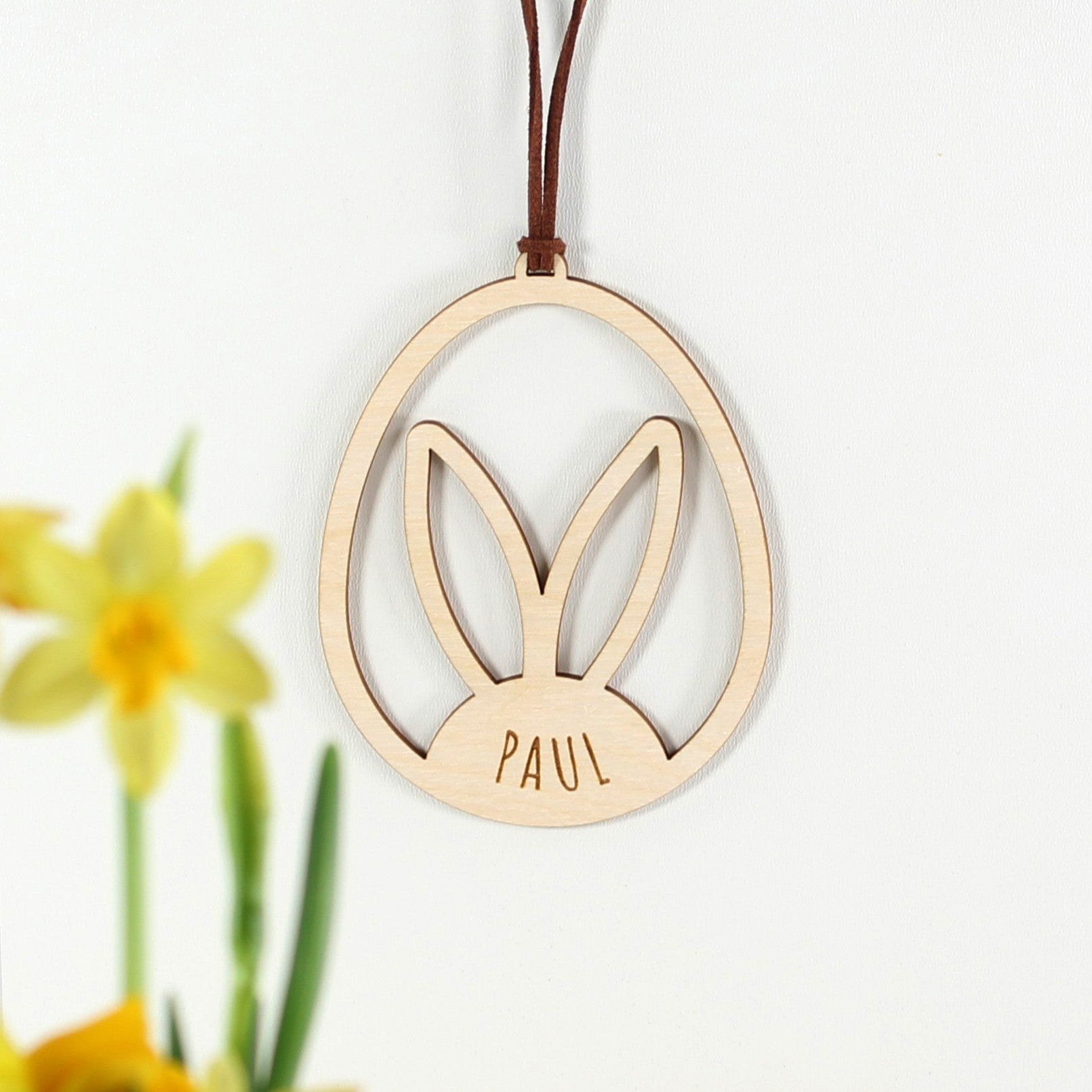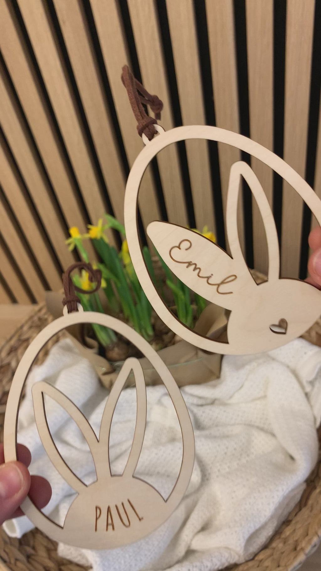 Personalisierter OsteranhÀnger aus Holz mit Hasenohren
