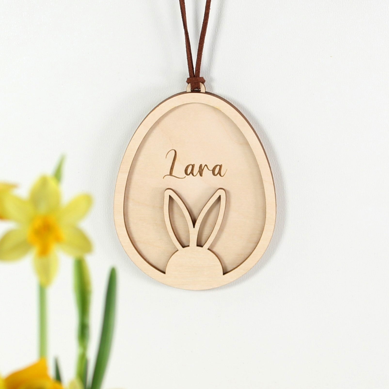 Personalisierter OsteranhÀnger aus Holz mit Hasenohren