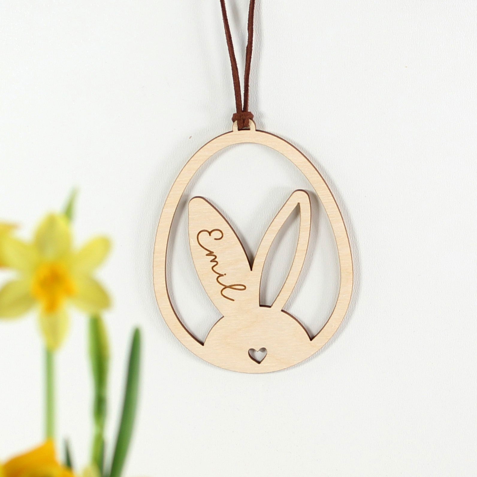 Personalisierter OsteranhÀnger aus Holz mit Hasenohren